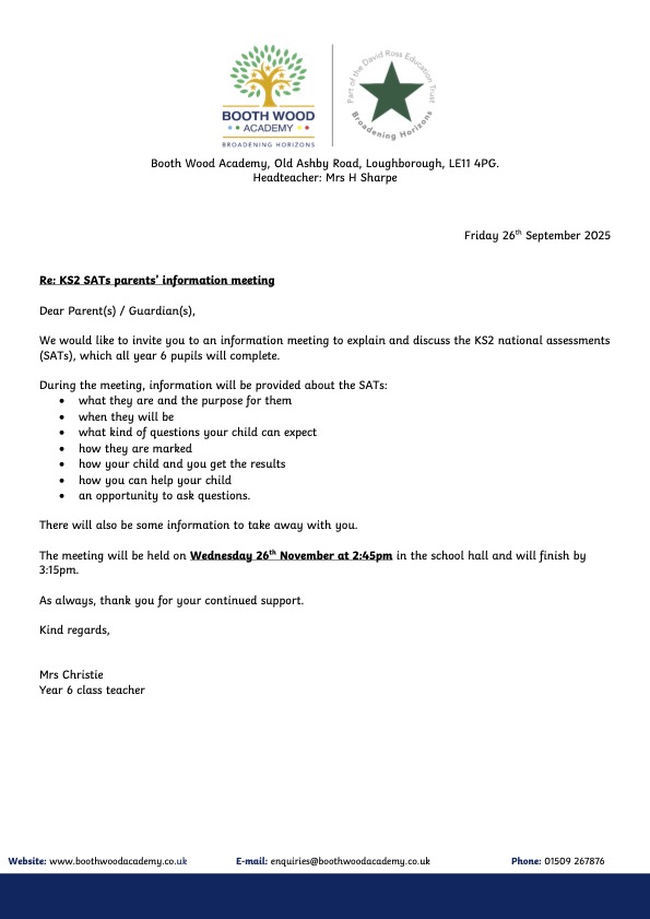 Year 6 SATs Parents' Information Meeting